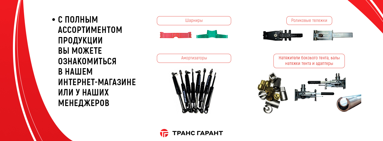 Основные запасные части: направляющие, ролики, уплотнители, механизмы фиксации, замки, штанги, панели, брезенты, тенты.